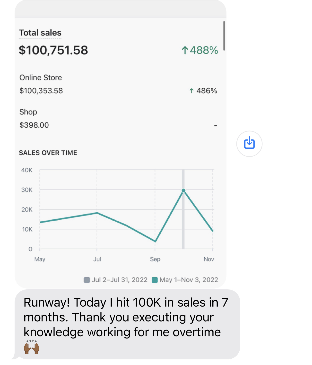 Working with Runway as my online marketing coach was one of the best decisions I've ever made. He worked with me to develop a tailored plan that not only met my goals, but exceeded them within just 24 hours! His expertise and knowledge of online marketing tactics enabled me to make $16K in sales, which was astounding for someone who had never done online marketing before. This is a testimonial that speaks for itself. If you're looking for online business success, Runway is who you should turn to!